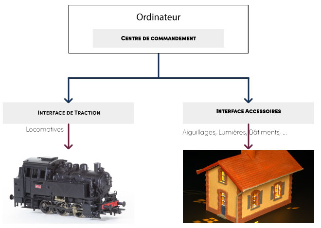 Les interfaces accessoires contrôlent les aiguillages, éclairages et animations.